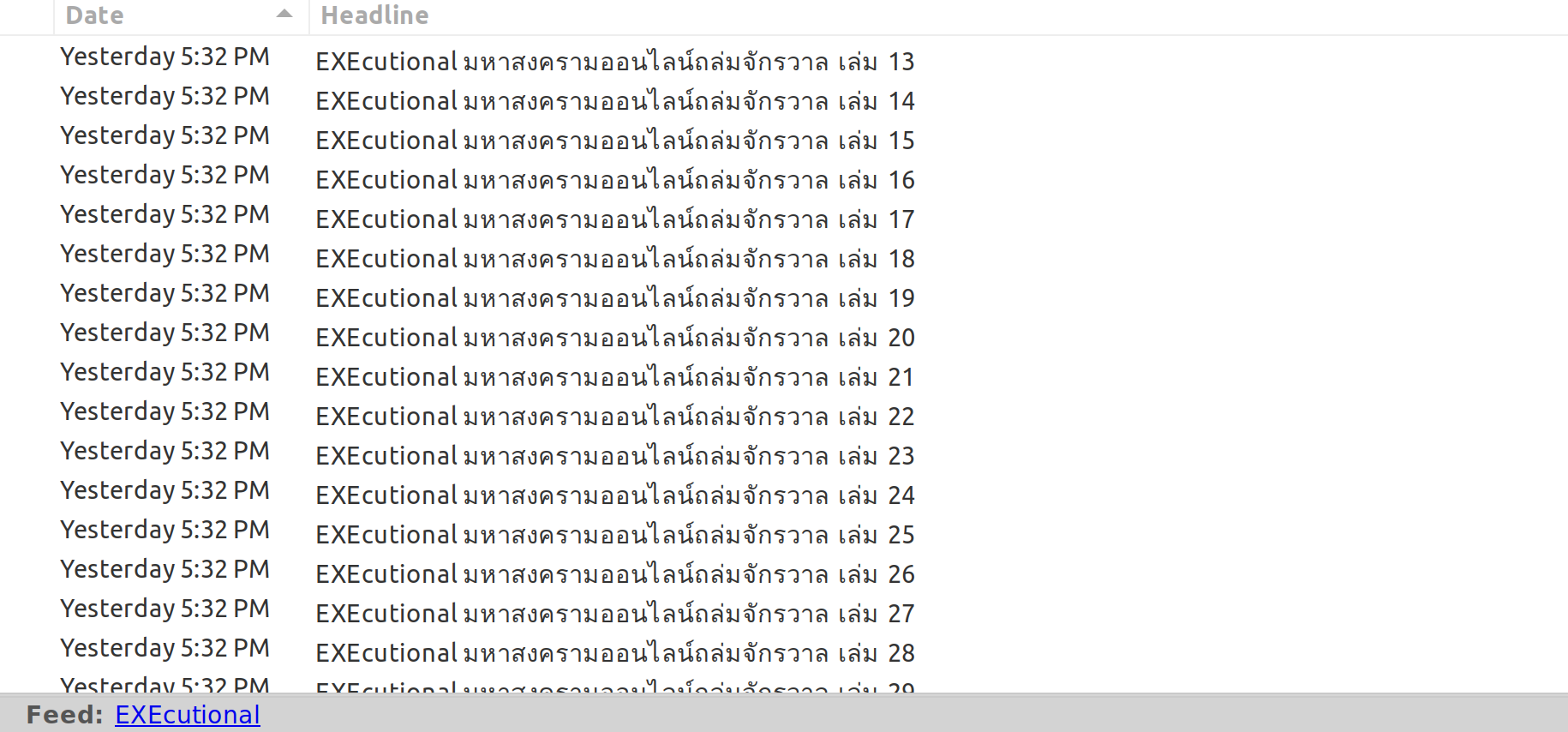 I am following a Thai manga named EXEcutional. For other manga, I would need to wait until I get back to Thailand and read them. Luckily, EXEcutional has an e-book version, so I could just buy it online. I however want to be notified whenever a new issue is released.